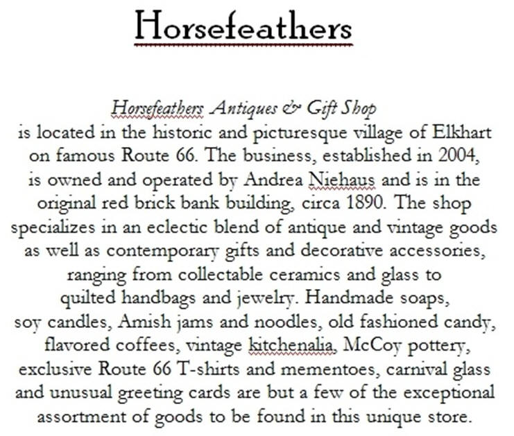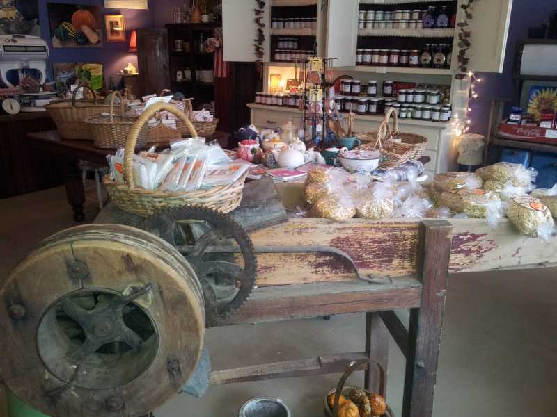 The Little Foxes is in a next-door walk-thru attached building, which exhibits artwork & paintings by local artisans, including that of Dragonfly studio instructor, Renee Sisk. The Little Foxes is our newest addition where we feature specialty foods such as Amish noodles, jams and jellies, fruit and berry butters and old fashioned candy and so much more. Vintage tins, cookie cutters, old fashioned kitchenware and farm implements as well as other antiques are displayed amongst the food items creating an old-world country store atmosphere. The Little Foxes is located in the original 1889 building that at one time housed the Brennan’s Store and later the Lanterman’s Store. The original storefront of the building has been restored and is now the entrance to the Little Foxes shop. The side of the building still shows some of the advertisement for shoes painted on the brick many years ago. |